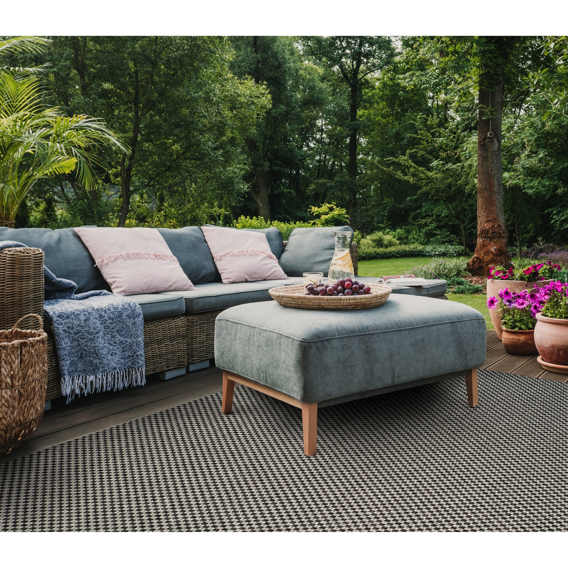 Ideal for a range of outdoor and indoor settings like gardens, patios, decks, sunrooms, or pool areas, this chic rug from the Courtyard Collection is a functional enhancement to any living space. Designed to withstand the demands of pets and children, this low-maintenance rug is equally suitable for bustling areas such as mudrooms or kitchens. Elevating outdoor decor with fresh designs in trendy hues and patterns spanning from timeless to modern, this exquisite rug collection sets a new standard for outdoor styling. Rug sizes may vary slightly.
