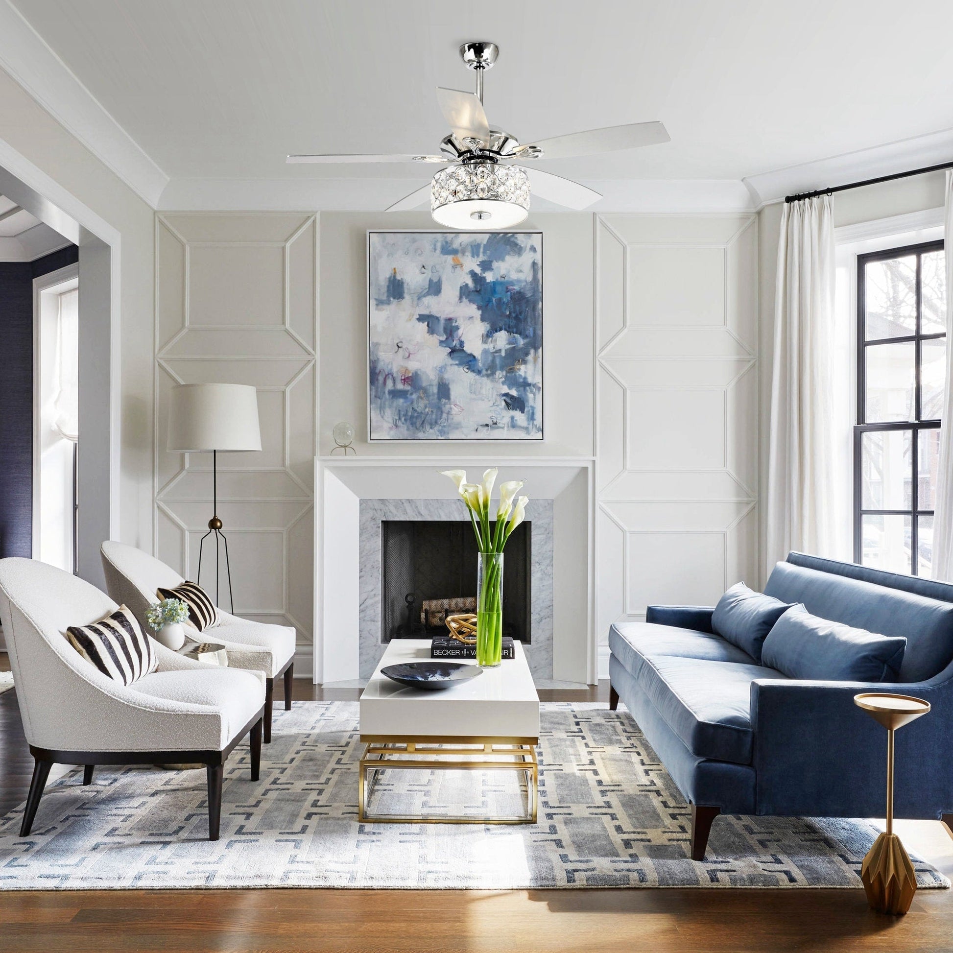 52 Modern 4-Light Chandelier Crystal Ceiling Fan with...