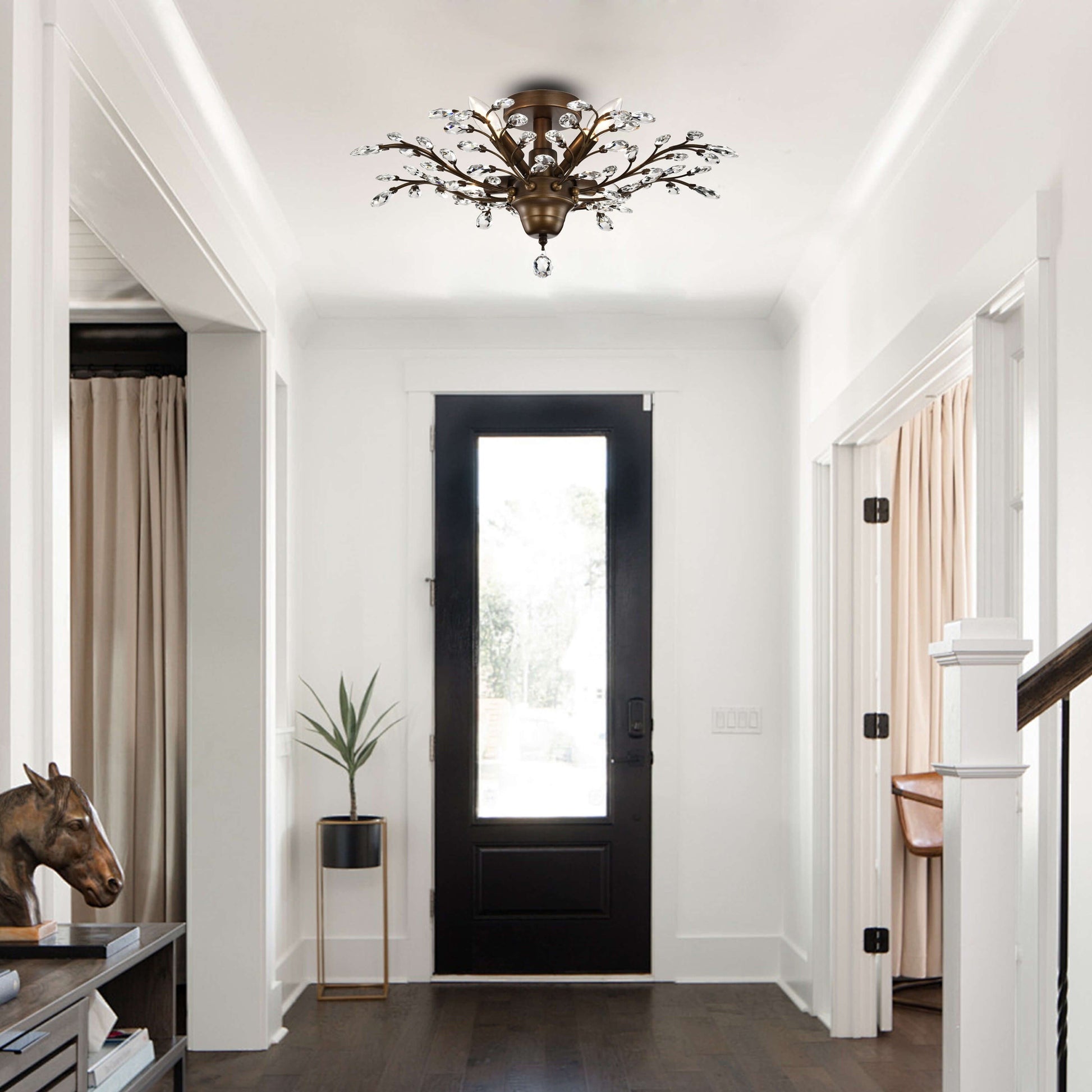 Add a touch of elegance to any room with the Holly 4-light Crystal Leaves Flush Mount. The finish and clear crystal leaves exude quality craftsmanship and style. Measuring 23.6 inches in diameter and 11 inches in height, this indoor fixture requires four 60-watt bulbs (not included) and is perfect for adding brightness to any living space.