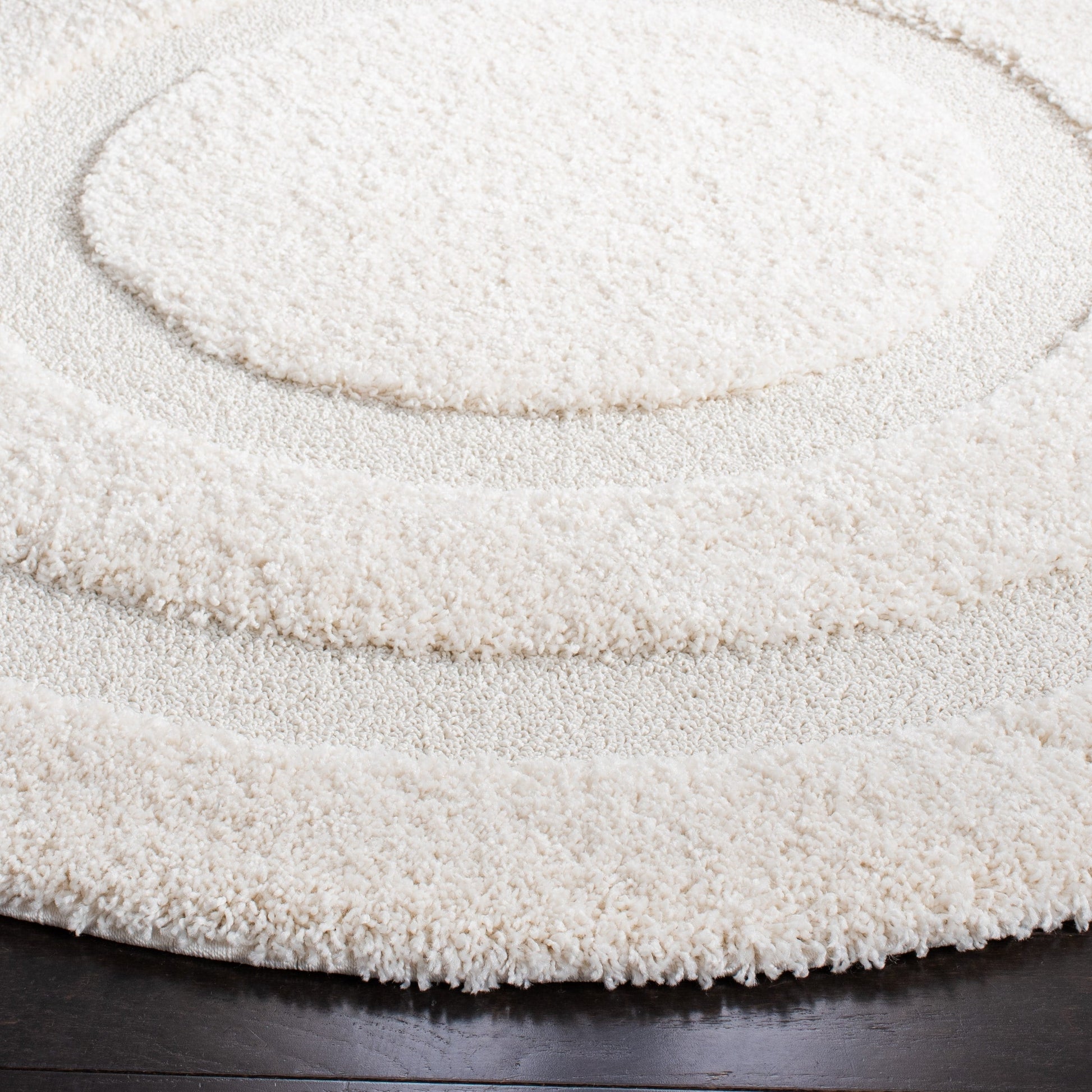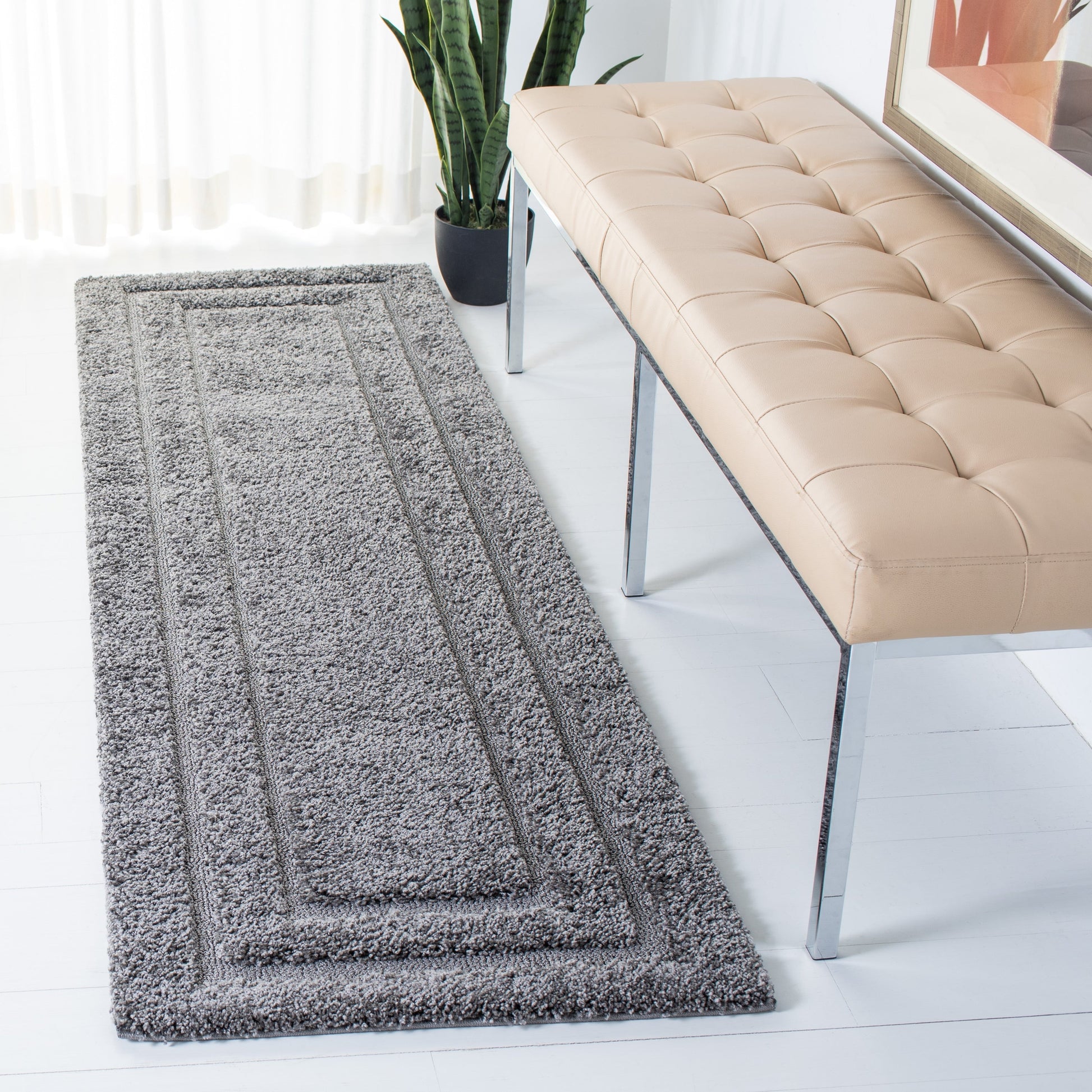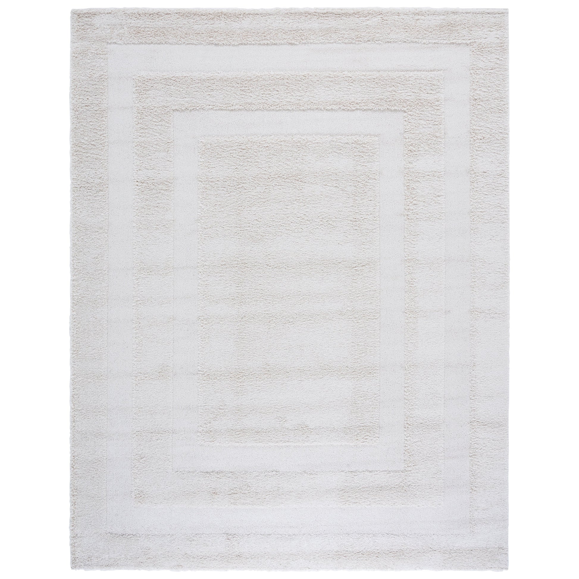 Experience ultimate plushness with the SAFAVIEH Florida Shag Carlinde Border Rug. This high-low pile shag rug features striking texture and a chic pattern that adds decorative dimension to any room in your home. The rug is more than 1 inch thick, making it super comfortable underfoot. It is machine-made and conveniently non-shedding for easy care. Ideal for your living room, dining room, bedroom, entryway, nursery, kid's room, playroom, dorm room, study, or home office. Part of SAFAVIEH's Florida Shag Collection, this rug is a perfect blend of quality and style that will last for years to come.