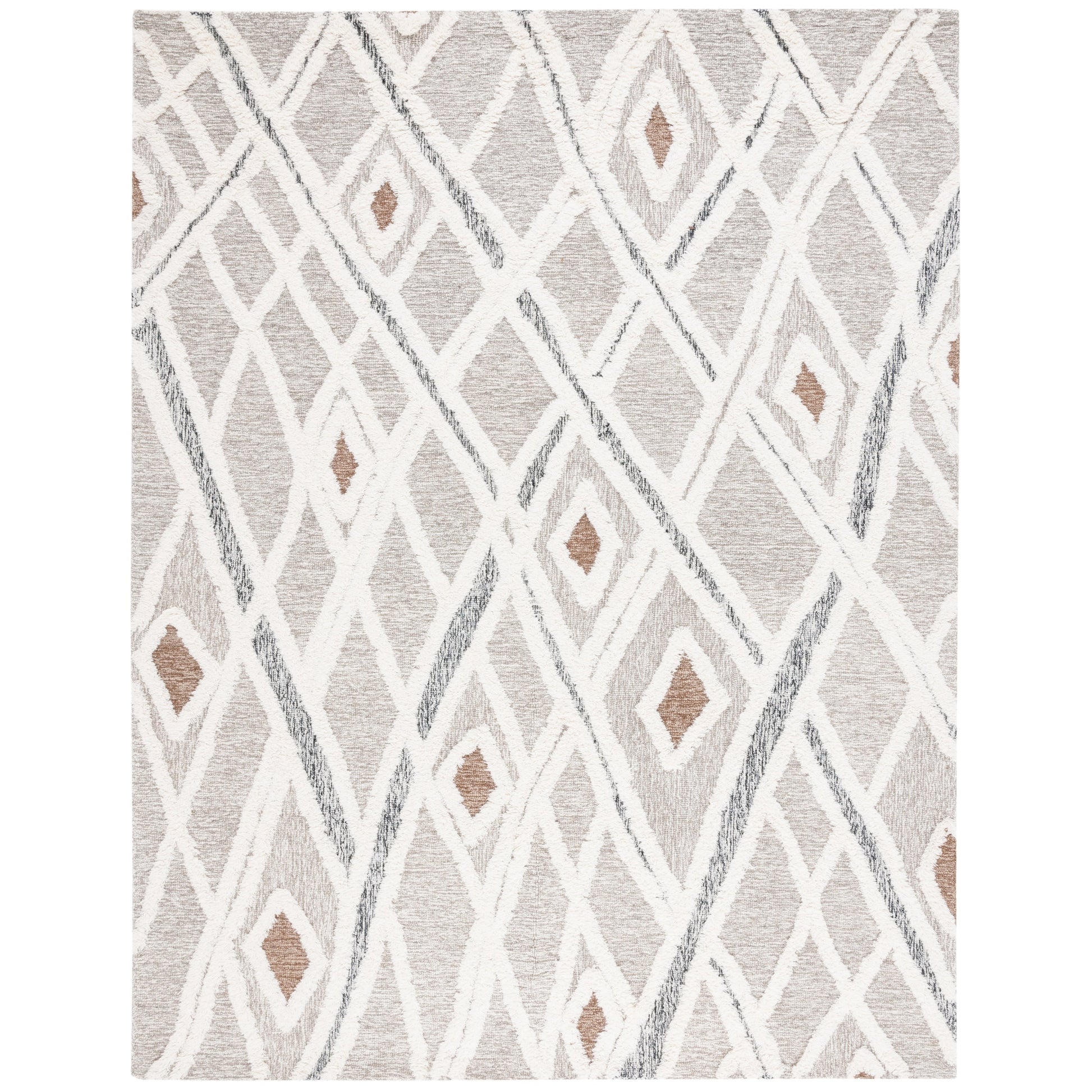 Elevate your living space with the exquisite craftsmanship of our 10' x 14' large rectangle area rug, thoughtfully hand-tufted in India. This luxurious rug is a testament to traditional techniques blended with modern design, boasting a plush pile height of 1/2' that provides a sumptuous underfoot experience.Crafted from a premium blend of 80% wool and 20% cotton, the rug ensures both durability and softness, making it an ideal choice for high-traffic areas and cozy living spaces alike. The wool's natural resilience against dirt and the cotton's soft texture create a perfect synergy for both comfort and maintenance.The charming ivory and brown color palette of this rug is highlighted by a sophisticated geometric pattern that seamlessly complements a range of interior styles, from contemporary to classic. The subtle interplay between the ivory base and the brown accents adds depth and dimension to any room, inviting a sense of calm and elegance.Revel in the touch of luxury that this hand-tufted rug brings to any home, reflecting an appreciation for the finer things while ensuring practicality for everyday use. It's more than just a rug; it's a statement piece that embodies timeless style and handcrafted excellence.