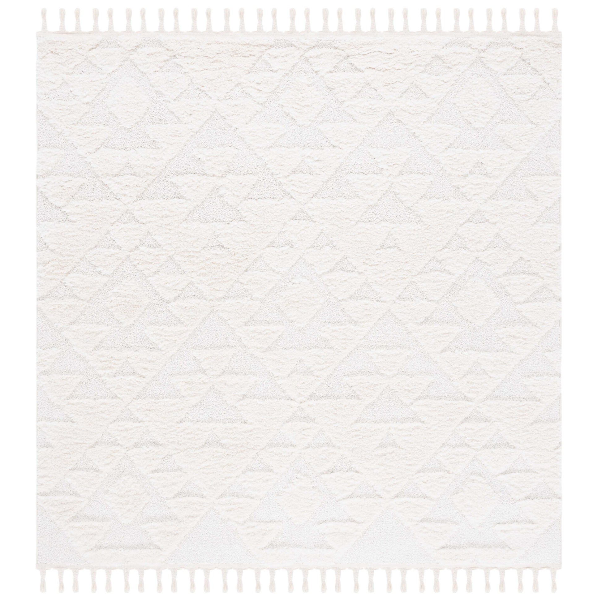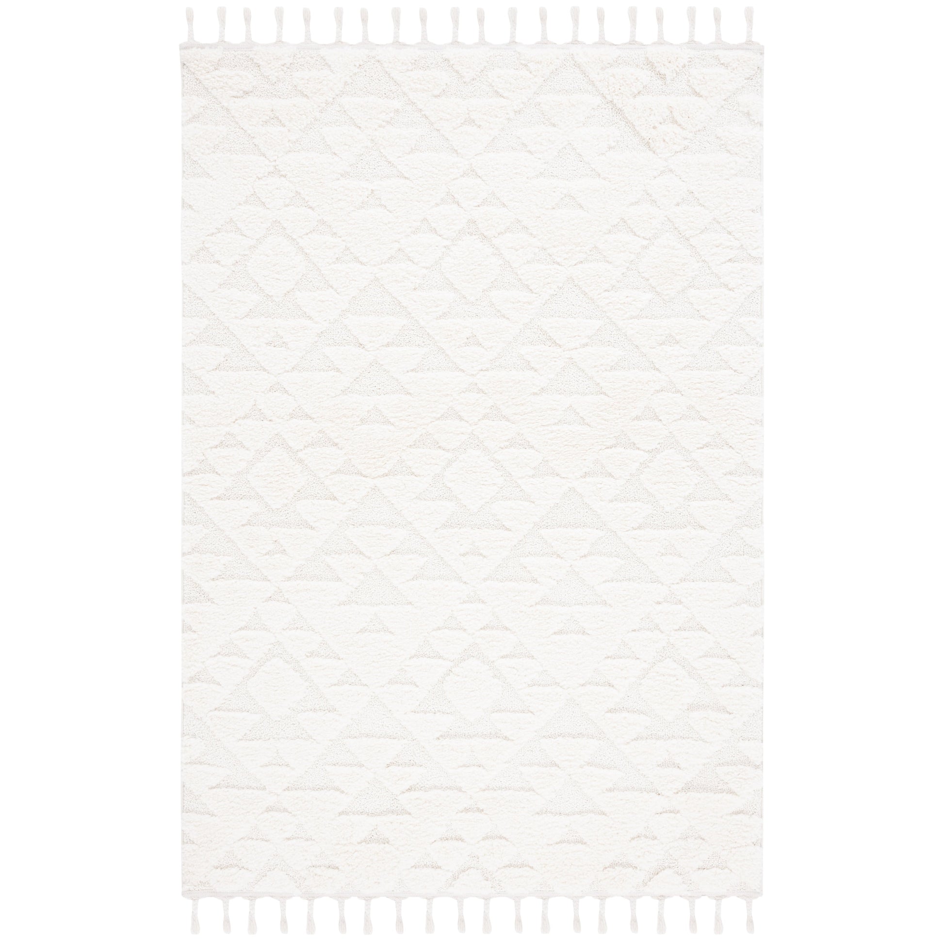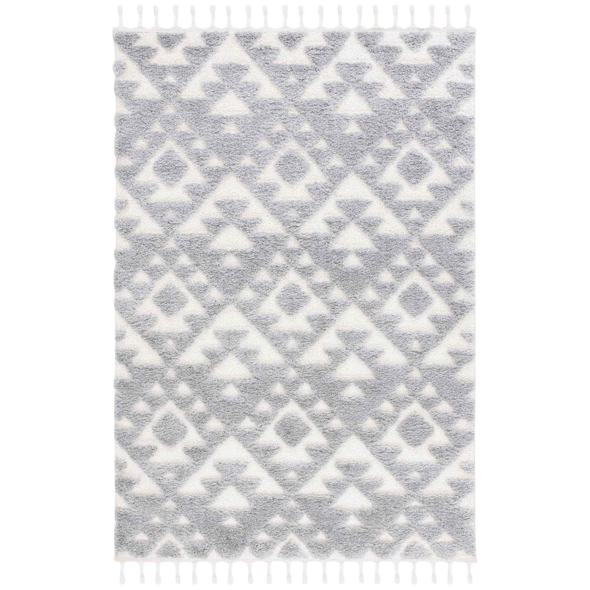 Add a plush and stylish touch to your home with this SAFAVIEH Moroccan Tassel Shag Kobi rug. The classic Moroccan diamond trellis and abstract patterns in neutral colors create a contemporary statement piece that complements any decor. The 2-inch pile thickness provides a soft and cozy feel underfoot, while the non-shedding synthetic fibers ensure long-lasting durability. The chic braided tassels add bohemian flair to the overall design. Perfect for any room in your home, this machine-made rug is part of SAFAVIEH's Moroccan Tassel Shag Collection.