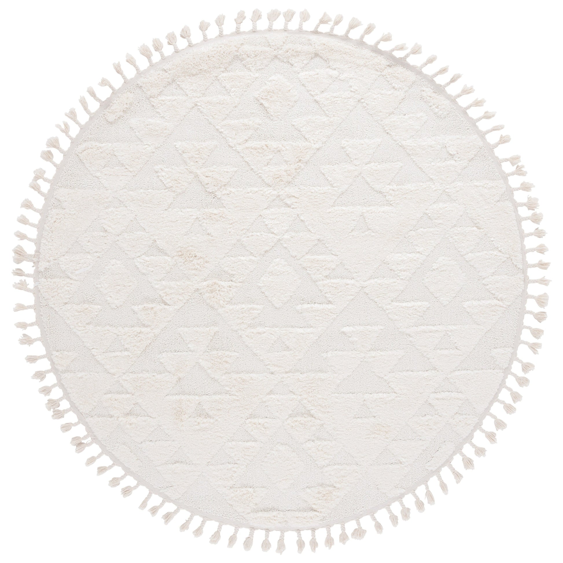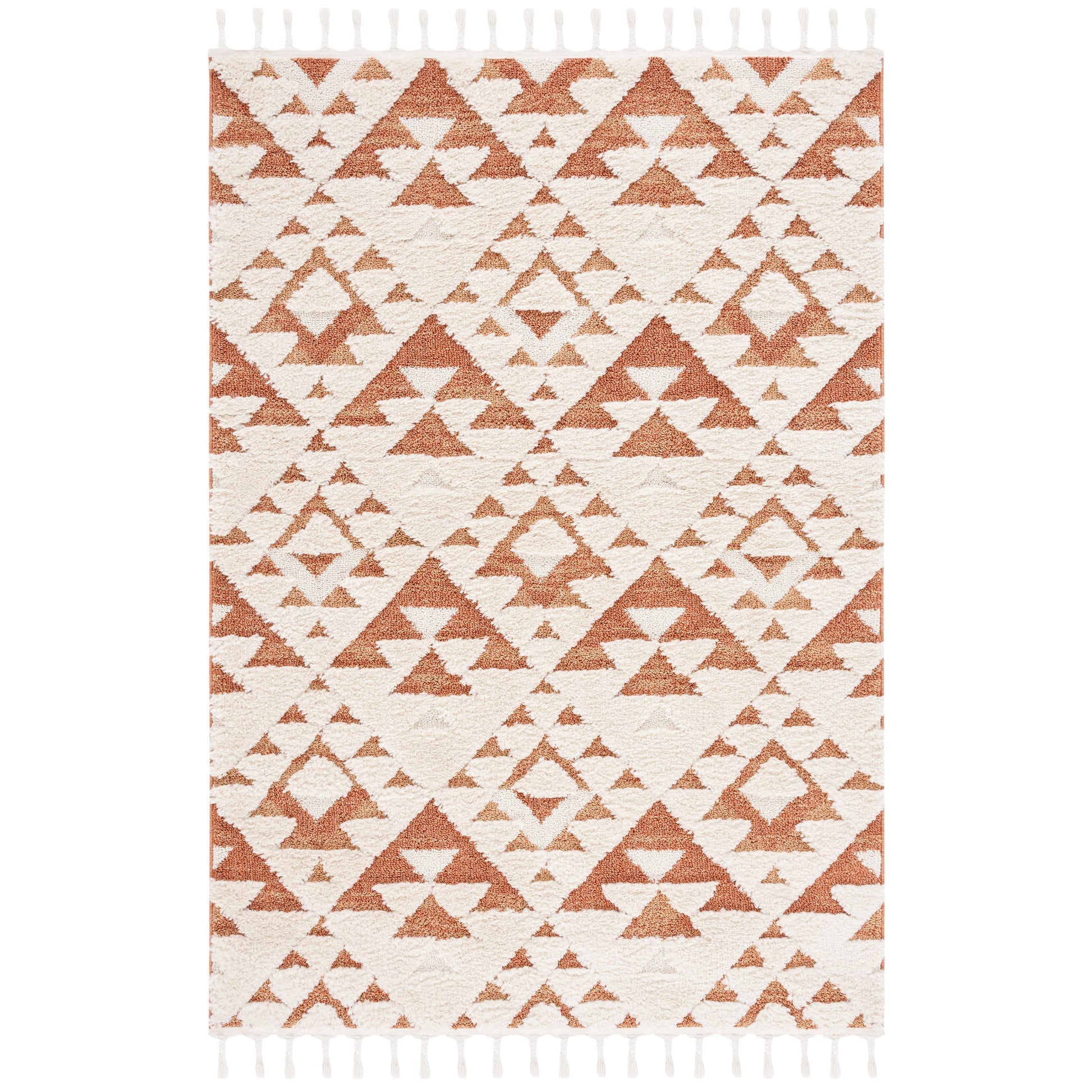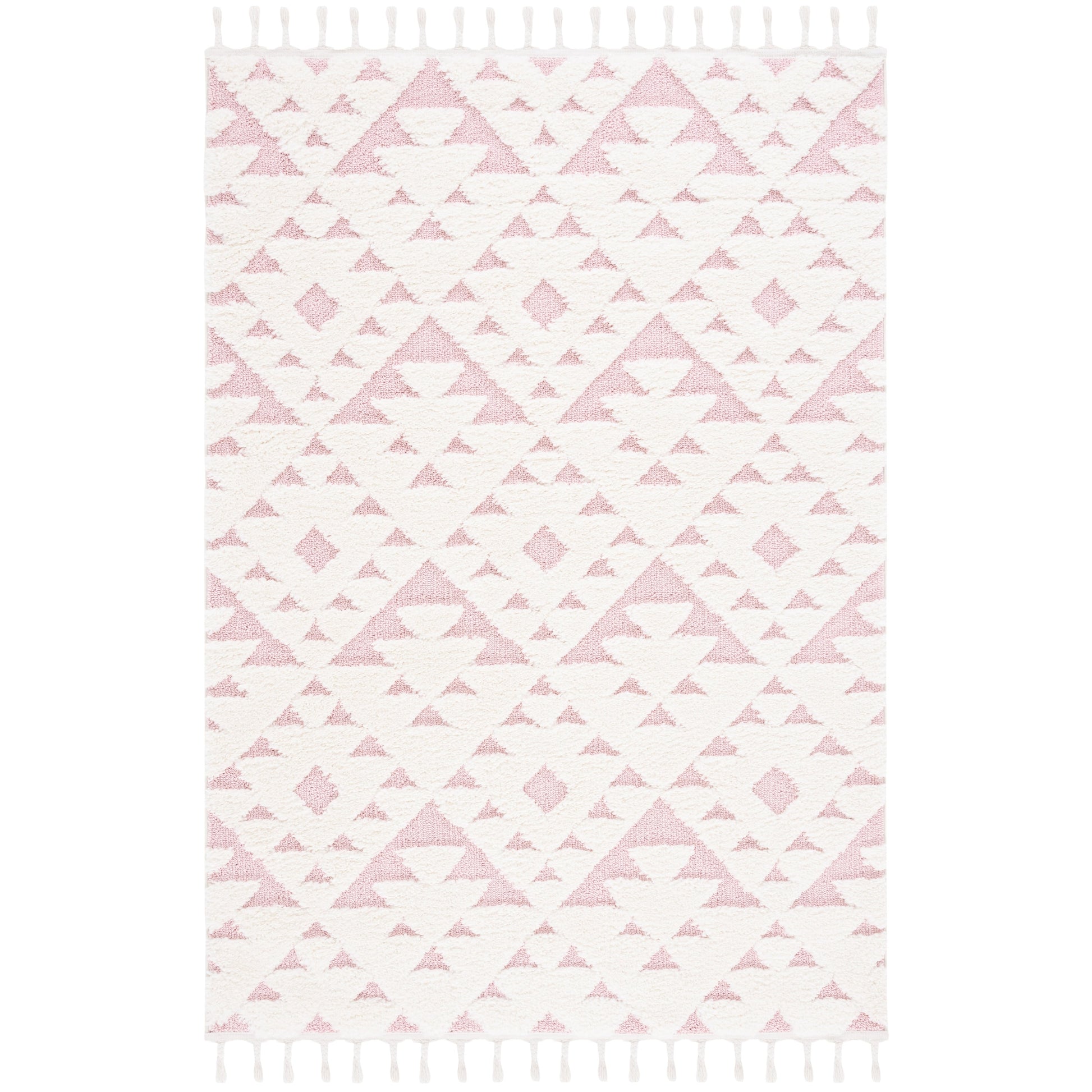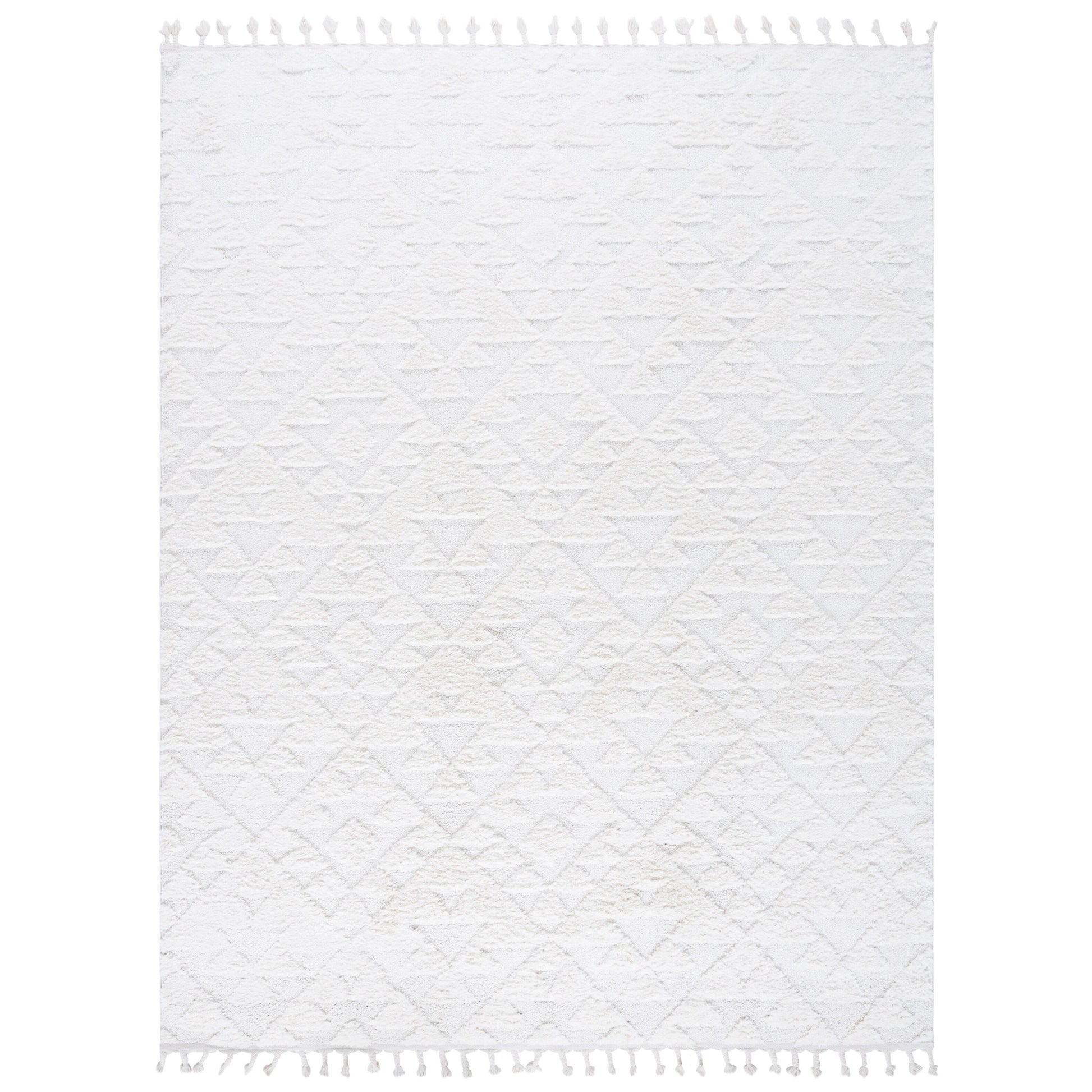 Add a plush and stylish touch to your home with this SAFAVIEH Moroccan Tassel Shag Kobi rug. The classic Moroccan diamond trellis and abstract patterns in neutral colors create a contemporary statement piece that complements any decor. The 2-inch pile thickness provides a soft and cozy feel underfoot, while the non-shedding synthetic fibers ensure long-lasting durability. The chic braided tassels add bohemian flair to the overall design. Perfect for any room in your home, this machine-made rug is part of SAFAVIEH's Moroccan Tassel Shag Collection.